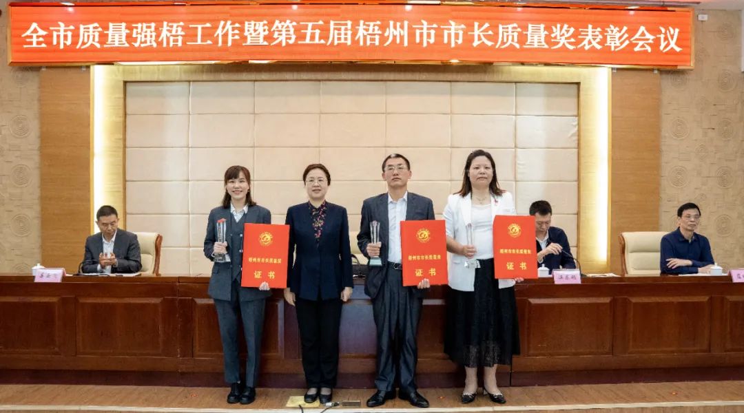 市長質量獎是梧州政府設立的最高質量榮譽!受國務院特殊津貼專家、集團董事長李浪輝委托,副總經(jīng)理唐專通代表集團參加會議并登臺領獎。